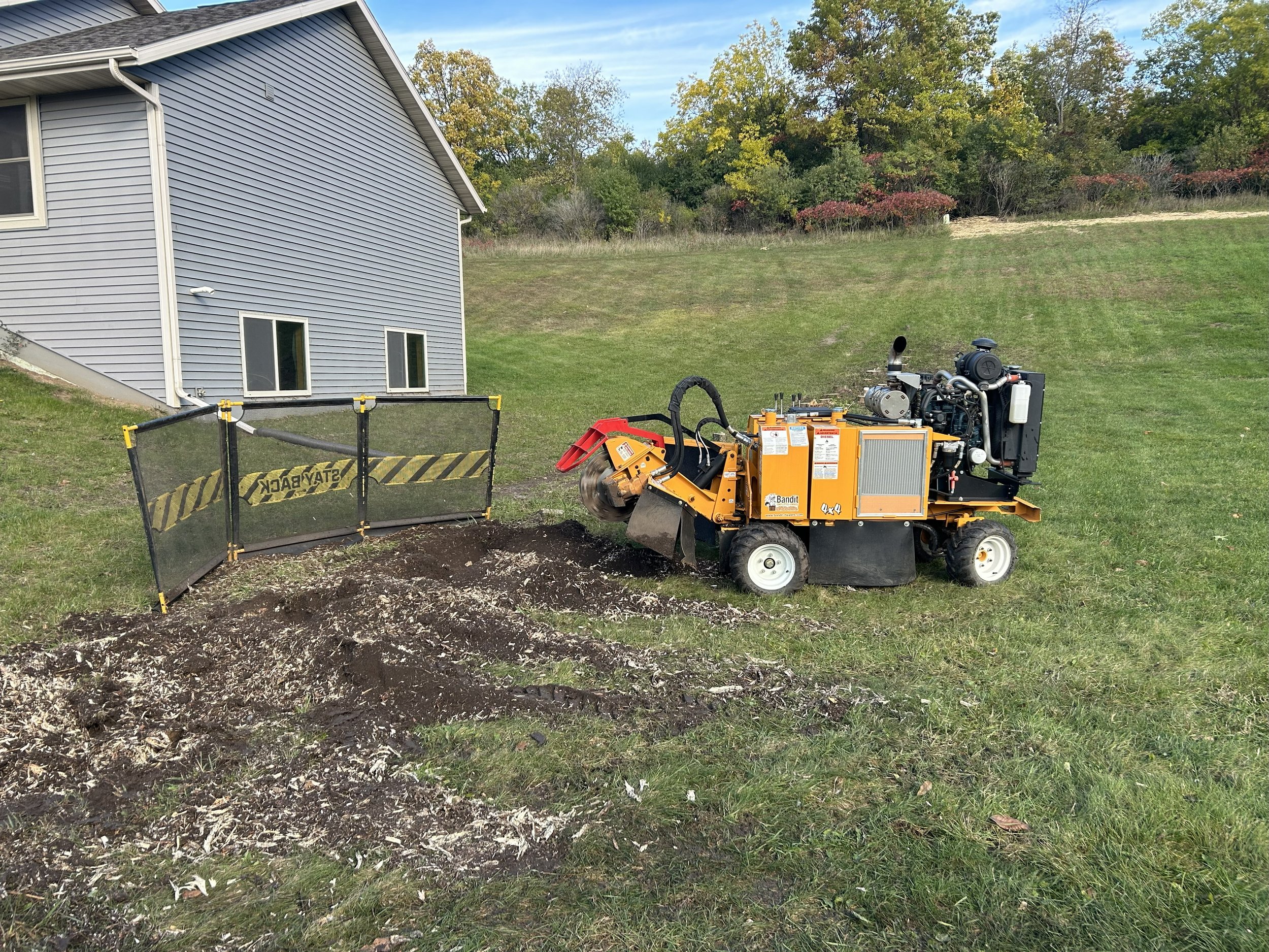 Whether it is a small stump that remains from a project years ago, or a brand-new removal, feel free to contact us for a free estimate. Upon request, we would be happy to remove the chips and backfill the hole with fresh topsoil. If you wish the area to grow grass, we can foster new growth by planting fresh grass seed.
